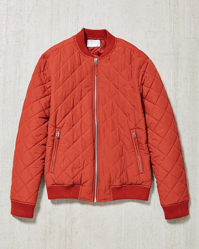 Are you ready for autumn; found this lovely Quilted regular-fit bomber jacket, Smooth woven polyester construction features a ribbed bomber collar with full-length front zip closure and two front zip pockets finished with rib-banded sleeve cuffs and hemline for a perfect fit. Favoring a modern look, the unique identity of Your Neighbors is reflected through clean designs and unexpected details.Prefect for the fall weather.