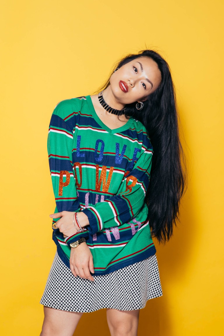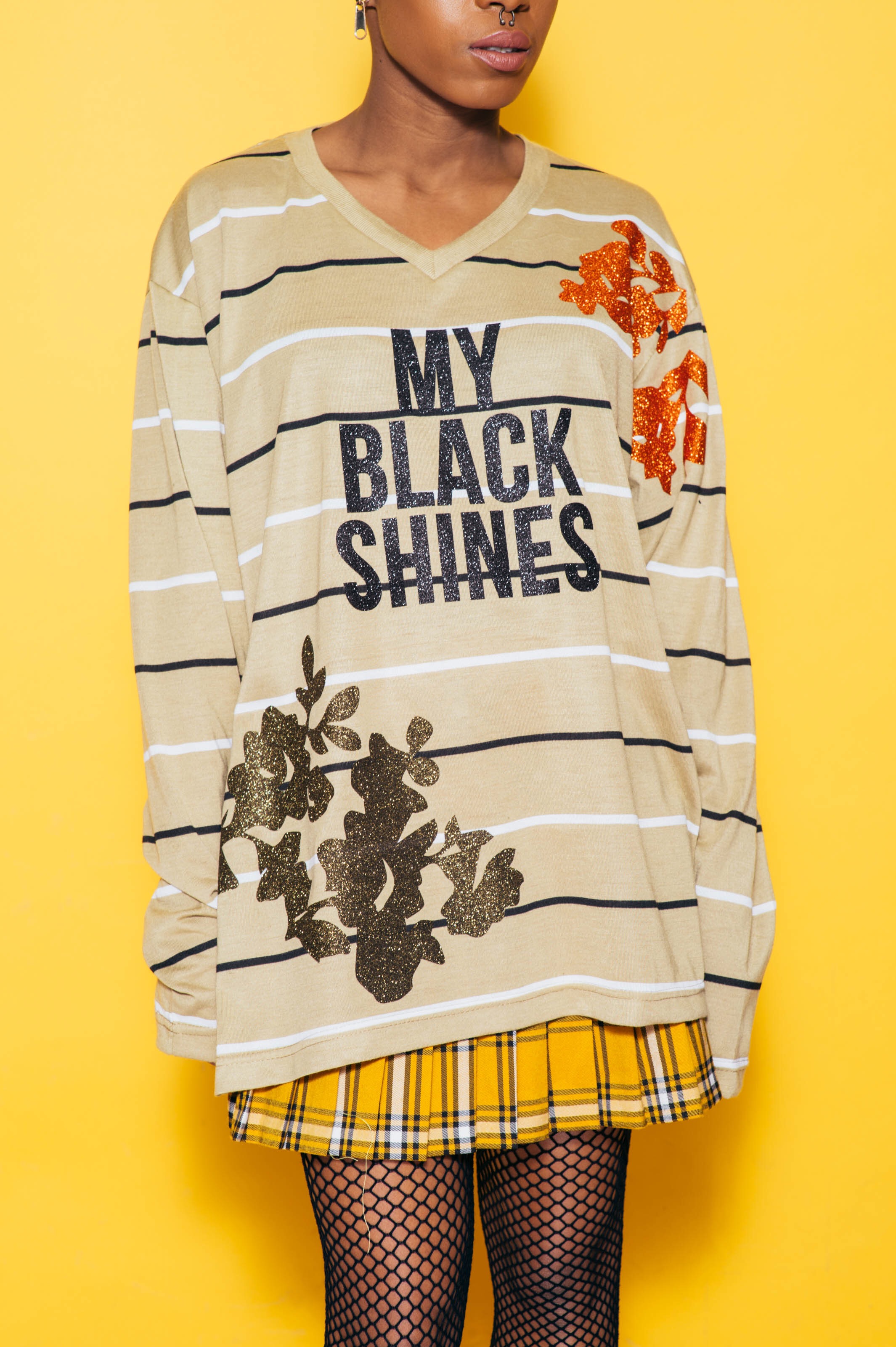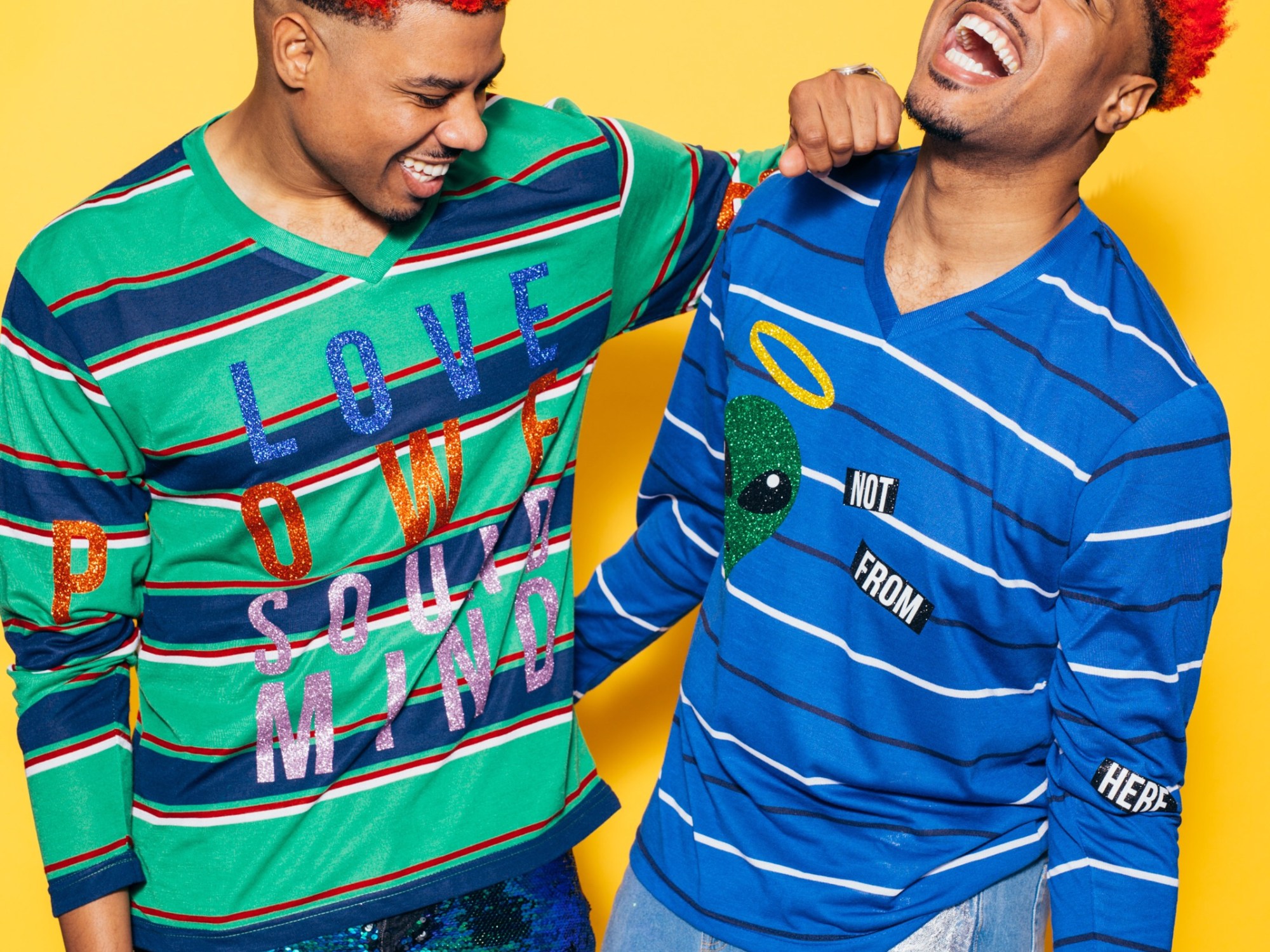 This new collection of T-shirts is electric! With pattern play and sparkling glitter, they appear to have actually come to life. “We wanted to create very fun, very wearable pieces that are also conversational.